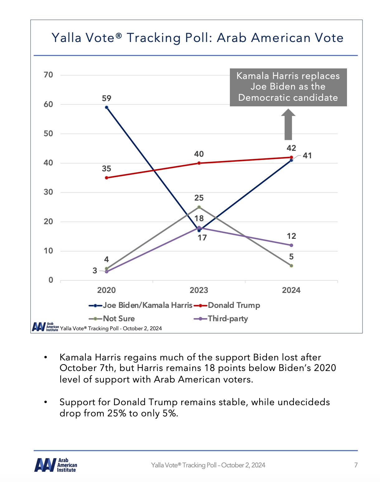 She is banking on gaining enough with white women at large and cutting Trump down with that bloc hard, to offset bleeding among not just Arab Americans, but Black and Hispanic ones too as well as assuming the 7% of white men who defected from Trump '16 to Biden '20, will go back to Trump '24 after her and Biden's tenure imo.