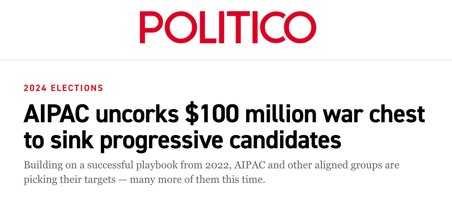 The deeper problem was a democratic deficit. In a presidential election year, there was no meaningful way to force accountability on the party, no lever that could compel leaders to hear our voices or adjust course. The convention was stage-managed, primaries were designed to ratify more than to debate, and the big donors and outside groups were already setting the boundaries of “acceptable” dissent. AIPAC openly pledged to spend $100 million--much of it Republican money--to oust anti-war candidates in Democratic primaries.