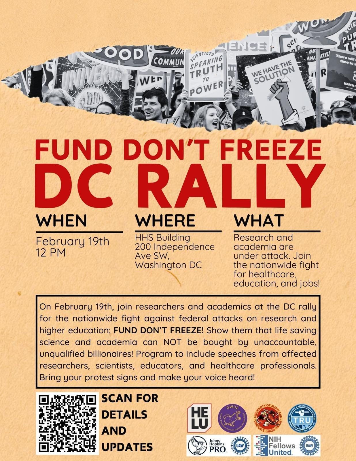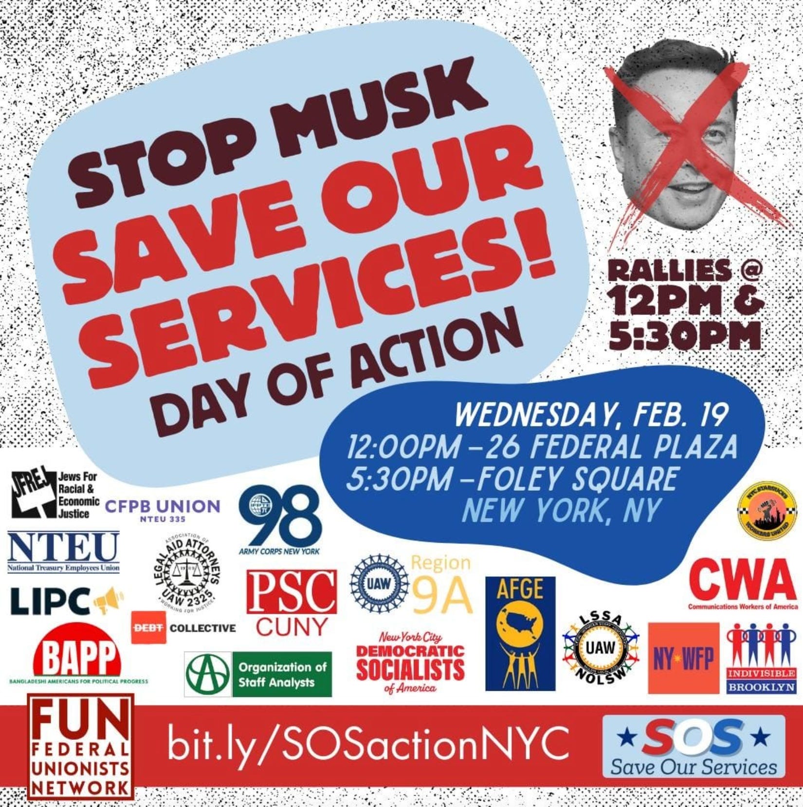 On February 19, protests will take place from DC to Seattle. In Washington, federal workers will rally at the Department of Health and Human Services at Noon, demanding an end to the funding freeze. Later, they will march to SpaceX’s DC headquarters—pressuring Musk directly for his role in this government purge.
