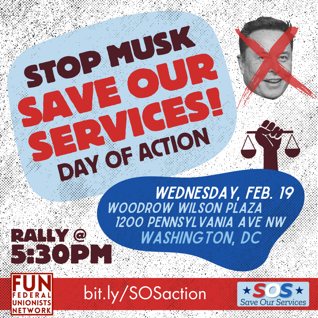 That’s why we’re not backing down. We’re blowing the whistle and calling on the public to stand with us on February 19. Musk and his cronies are trying to push out dedicated workers under the guise of "voluntary" resignations, but we know the truth—this is an attack on essential services that millions of Americans rely on. If they succeed, your healthcare, benefits, and protections will be on the chopping block. We’re fighting back, and we need you to join us. Wear red, white, and blue, post with #SaveOurServices, and show up in cities across the country to stop this corporate coup.